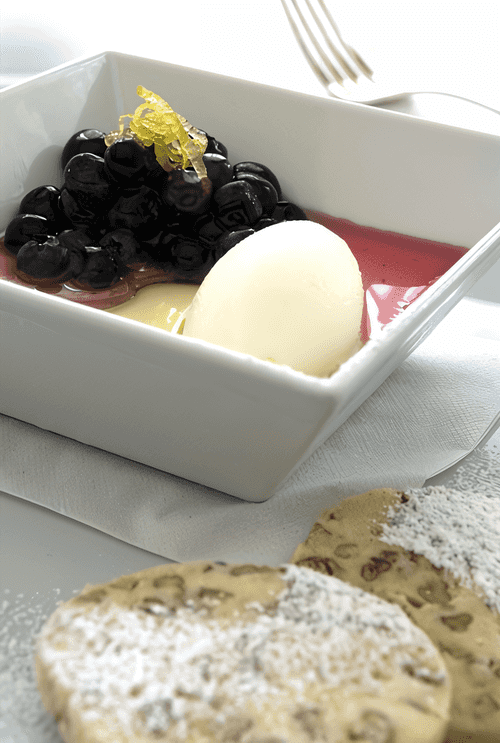 Lemon sherbet with berry compote