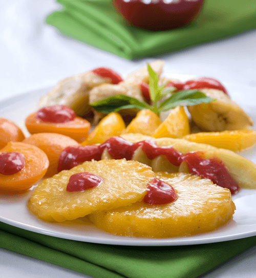 Baked caramelized pineapple is a refined dessert with an exotic touch rooted in Pan-Asian culinary traditions. The simplicity of preparation combines with depth of flavor: juicy pineapple baked with brown sugar acquires a rich caramel aroma, a light crispy crust, and a soft, melt-in-your-mouth texture. This dessert is perfect as a standalone treat or as an accompaniment to ice cream or yogurt. Its subtle balance of sweetness and natural acidity makes it a refreshing indulgence. This method of preparing pineapple is especially popular in Southeast Asia, where the caramelization of fruits highlights their natural flavor notes and reveals the richness of exotic aromas. Serve warm, enjoying its rich, slightly smoky and sweet taste.