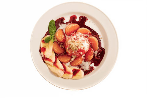 Sandy with wine sauce and mandarins is a refined delicacy of French cuisine that combines rich fruity and wine notes with the softness of vanilla ice cream. This dessert may originate from traditional French combinations of citrus and wine sauces used in pastry masterpieces. Its taste is an exquisite balance of sweetness, tartness, and spicy nuances imparted by red wine and orange marmalade. Mandarins add freshness and a slight bitterness, while the warming wine sauce seeps into each scoop of ice cream, creating a harmonious aftertaste. Perfect for concluding a romantic dinner or festive feast, this dessert not only delights the palate but also looks stunning, adding elegance to any event.
