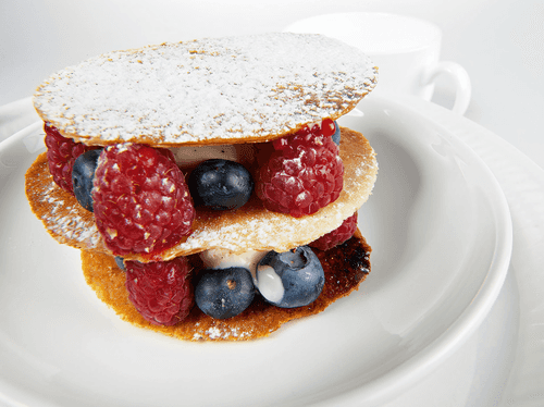Mille-feuille with berries and honey ice cream is the embodiment of elegance and refined taste. This dessert, inspired by the French tradition of mille-feuille, has won the hearts of gourmets worldwide. Crispy puff pastry layers generously dusted with powdered sugar create a perfect pairing with delicately made honey ice cream. The berry assortment—raspberries, strawberries, and blueberries—adds freshness and vibrancy to the flavor, turning each spoonful into a true celebration. With a harmony of sweetness, crunchiness, and creamy softness, mille-feuille becomes the ideal dessert for both a romantic dinner and a festive feast. This sweet masterpiece brings joy and transports you to a world of gastronomic bliss.