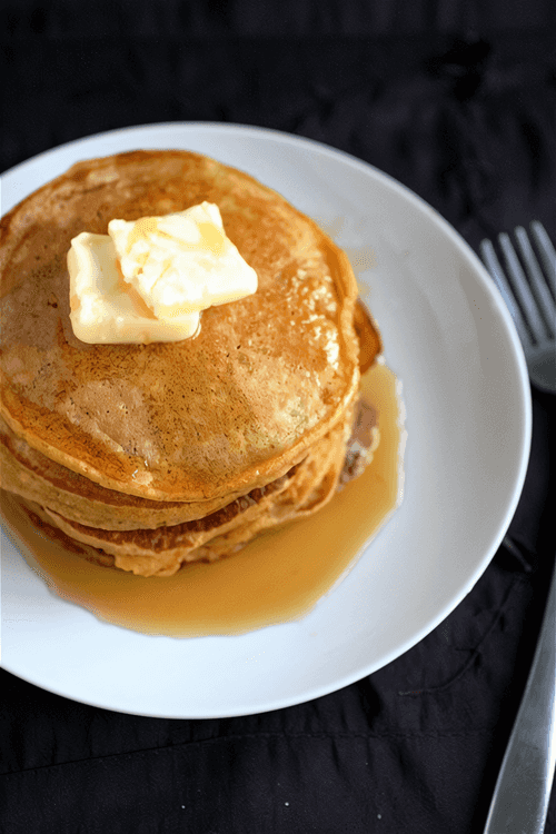 Lightly grease the pan with vegetable oil and fry the pumpkin pancakes in the heated pan (about 1 minute on each side).