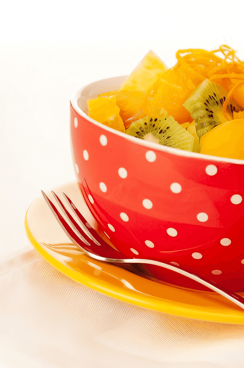 Peel the kiwi and cut it lengthwise into 4 parts, then chop into small pieces. Transfer to a bowl with fruits and mix. Serve immediately.