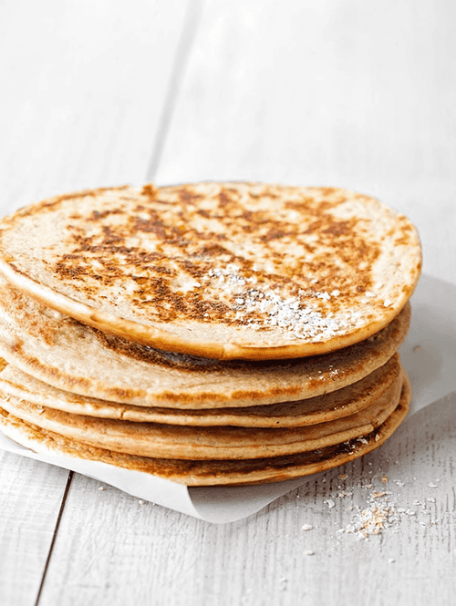 Heat a non-stick skillet and pour all or half of the batter onto it, depending on the size of pancakes you like. Fry for one and a half minutes on each side until golden.