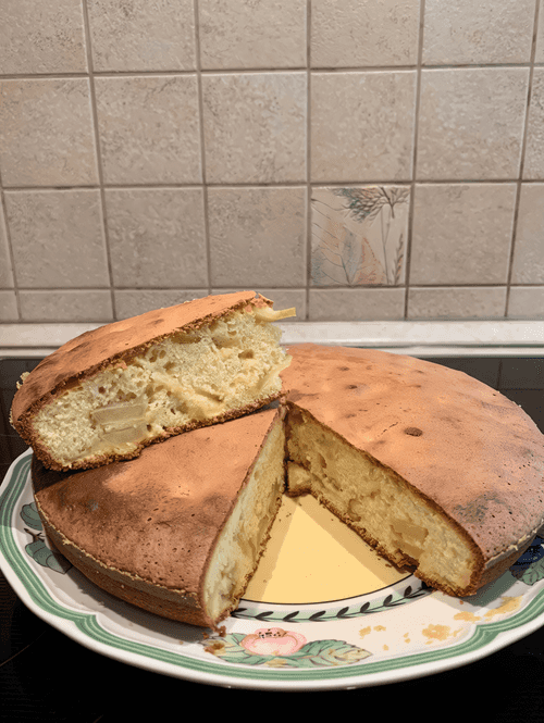 Cut the apples into small pieces (cubes, slices) and mix with the resulting dough.