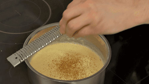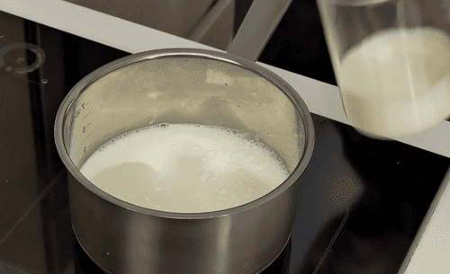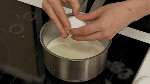 Pour milk and cream into a saucepan, heat it but do not bring to a boil.