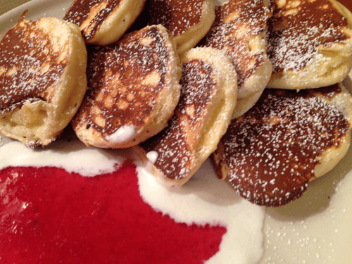 Flip and bake under a lid. Each pancake cooks for no more than 1 minute.