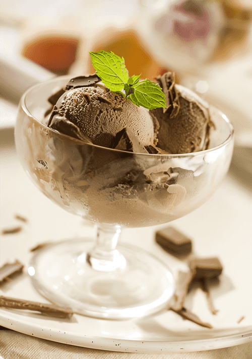 Chocolate ice cream with sambuca is a refined dessert with Italian roots, where the creaminess of the ice cream blends with the rich cocoa flavor and subtle notes of anise sambuca. This dessert is rooted in Italian culinary traditions known for their love of experimenting with flavors. The thick, velvety texture of the ice cream is created by combining egg yolks, milk, and cocoa, while sambuca adds a delicate sweetness with a light spicy accent. The uniqueness of the dish lies in its ability to highlight the flavor harmony between the bitterness of chocolate and the sweetness of the liqueur. It is perfect for finishing a dinner, especially accompanied by fresh berries or almond cookies, adding a touch of Italian elegance to every moment.