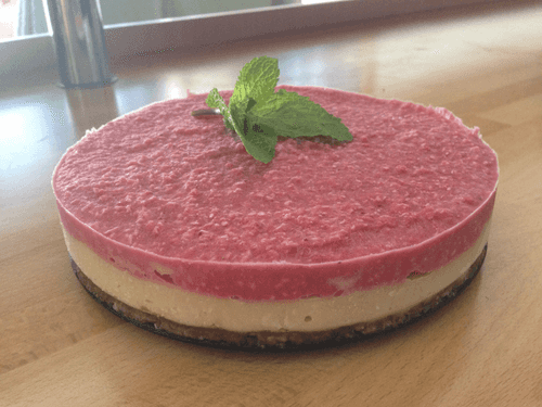 Send soaked cashews, lemon juice, honey, and coconut milk to the blender for a couple of hours. Blend well until a thick, smooth cream forms. Spread 2/3 of the cream evenly over the bottom layer. Add berries to the remaining cream in the blender and blend again. Layer the final berry layer and place the mold in the freezer until the cake hardens.