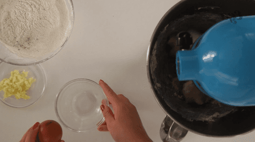 In a blender, mix cold diced butter with brown sugar and a pinch of salt at high speed, then add the egg yolk and blend until smooth again.