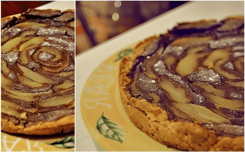 Pour the cream into the mold, slice the pears, and place them on top. Bake for 40 minutes at 160 degrees.