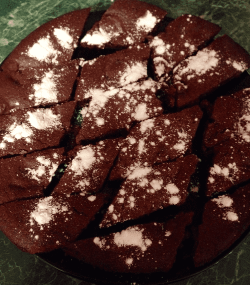 Cool down. Cut into pieces, decorate with powdered sugar.