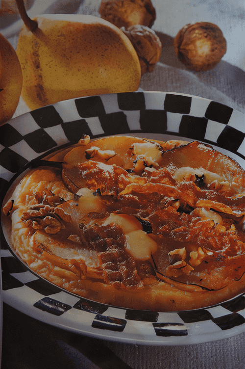 Pear pancakes with crispy bacon are an amazing combination of sweet and savory flavors that bring gastronomic pleasure. The recipe is based on tender dough complemented by fragrant pears and spicy notes of cinnamon. Historically, pancake traditions are deeply rooted in Russian cuisine, and the addition of fruits and cheese makes this dish modern and sophisticated. Crispy bacon adds textural variety, while nuts provide a special richness to the flavor. These pancakes can be served both for breakfast and as an original dessert, surprising guests with the unusual combination of ingredients. They pair perfectly with a cup of fragrant tea or light white wine, creating a harmonious dish for cozy evenings and festive gatherings.