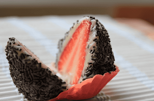 Natural strawberry candies are an exquisite dessert that combines the freshness of the berry with the tenderness of vanilla yogurt and the richness of chocolate. This recipe has roots in European cuisine, where simplicity and natural ingredients are valued above all. Strawberries soaked in yogurt cream and covered with chocolate shavings turn into a small frozen wonder that offers true delight. The bright taste of fresh berries contrasts with the soft sweetness of yogurt, while chocolate adds deep aromatic notes. These candies are perfect for summer days, elegant parties, and simply for enjoyable moments with a cup of tea. Moreover, it is a healthy dessert as strawberries are rich in vitamins and yogurt contains probiotics. The simplicity of preparation makes it accessible even for culinary beginners.