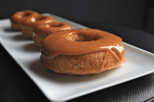 If you made small donuts, dip them directly in caramel. If you have large donuts, drizzle them with caramel using a spoon.