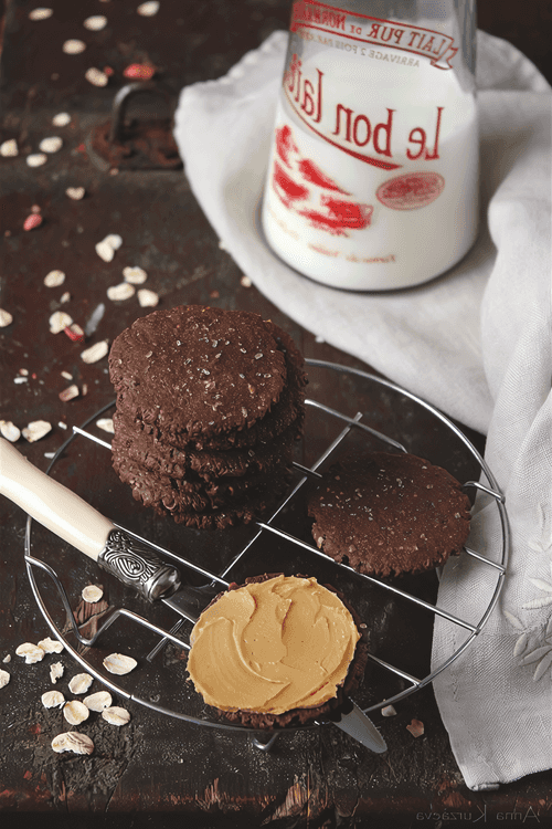 Chocolate sandwich cookies with peanut butter are the embodiment of American culinary imagination, where rich chocolate flavor harmoniously blends with creamy nut filling. Its roots trace back to the traditions of American home desserts, where simplicity in preparation meets richness in taste. Crispy with a light texture from oats and hints of Nutella®, these cookies evoke warm memories of cozy family evenings. The delicate filling of peanut butter and honey gives them a creamy consistency and light sweetness, making them the perfect treat for a cup of aromatic coffee or tea. This dessert is ideal for both cozy gatherings and special occasions, allowing one to enjoy an unforgettable combination of chocolate and peanuts.