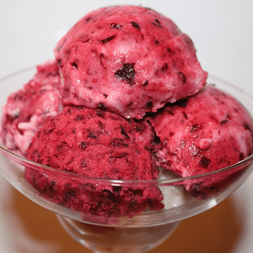 The berries should be frozen. Put yogurt and berries in a blender, blend everything into a thick mass, and add sweetener to taste. You can use any type of berries you like.