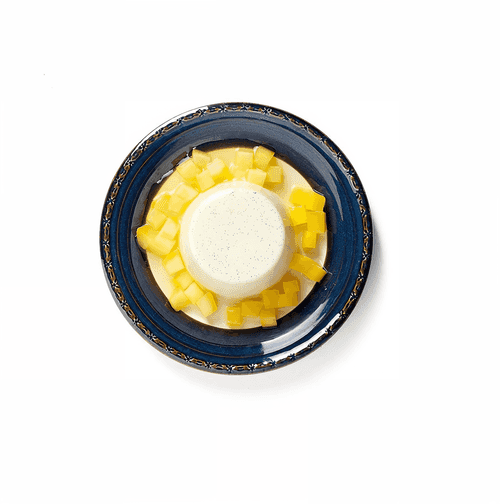 Vanilla panna cotta with mango in syrup