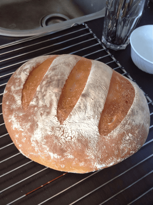 When the bread is ready, take it out of the oven, place it on a rack, and let it cool for about 3 hours, after which the bread is ready to eat.