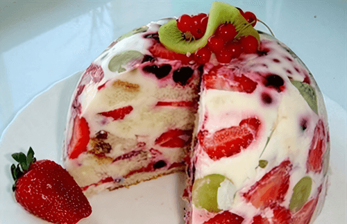 Summer berry dessert is the embodiment of freshness and lightness in one dish. Its roots go back to the traditions of European cuisine, where the combination of natural berries with delicate creamy textures is valued. This dessert captivates with its airiness: a sour cream base infused with the aroma of fresh berries combines with soft pieces of sponge cake, creating a harmony of flavors. The light tartness of strawberries and kiwis perfectly complements the sweetness, while gelatin gives structure and makes it exquisite. Such a dessert will adorn a summer table, serve as a perfect ending to dinner, or be a delightful treat on a hot day. It requires no complex ingredients but offers true enjoyment through its simplicity and tenderness.