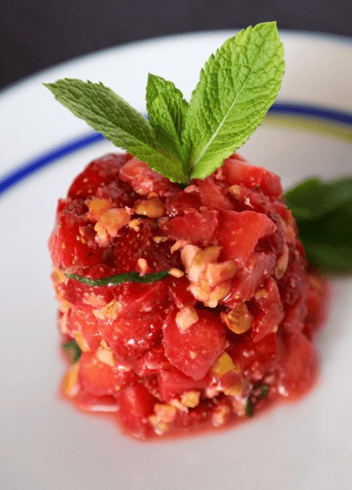 Strawberries with pistachios are an exquisite dessert that harmoniously combines the sweetness of fresh berries, the crunch of pistachios, and the refreshing tartness of lime. This recipe is inspired by European gastronomic traditions where simple ingredients come together for refined enjoyment. Tender pieces of strawberries infused with mint aroma create lightness, while crushed pistachios add texture and a rich nutty flavor. A small pinch of brown sugar enhances the natural sweetness of the berries, and chilling the dessert intensifies its refreshing effect. This dish is perfect for summer evenings, romantic dinners, or as an exquisite addition to a festive table. Serving it with a light nut sprinkle makes it not only delicious but also aesthetically pleasing. True pleasure in every bite!