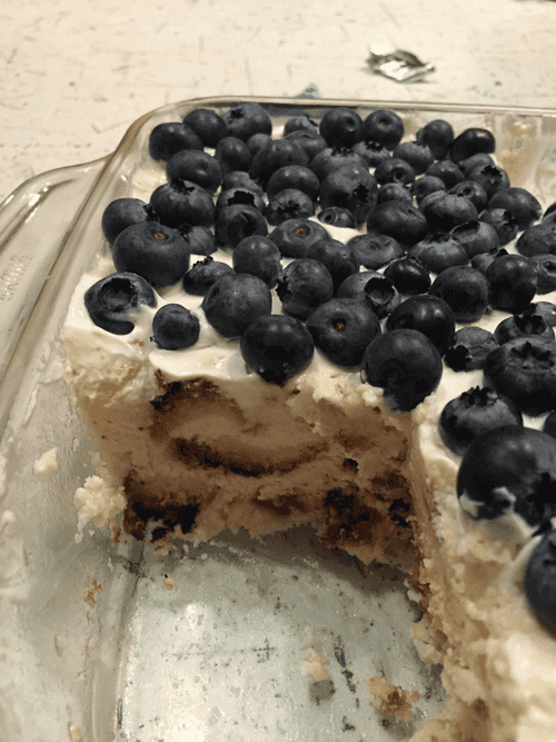 Place fruits and/or berries on the cake - fresh or canned. Then pour the jelly - two cups of syrup in which the fruits were blanched and 1 cup of dissolved gelatin (2 tablespoons of gelatin per 1 cup of water). Send to the refrigerator for 2 hours.