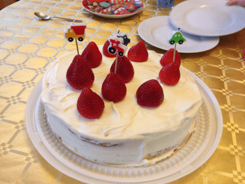 Spread the first layer with a third of whipped cream and berries, and sprinkle with a third of the berries. Layer all the layers, finishing with the cake.
