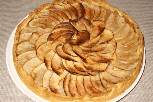 French apple pie is the embodiment of elegance in French cuisine. Its roots lie in the traditions of home baking, where special attention is paid to the delicacy of flavor and balance of textures. The crumbly dough, handmade, gently envelops the sweet filling of apple jam, while thin slices of fresh apples baked to a golden color adorn the top. The aroma of vanilla sugar fills the kitchen with coziness and warmth, awakening the desire to enjoy this dessert with a cup of coffee or tea. This pie is suitable for family dinners, festive gatherings, and quiet evenings, offering moments of true gastronomic pleasure. Each slice is a harmony of crispy crust, soft fruity center, and delicate aroma of French pastry.