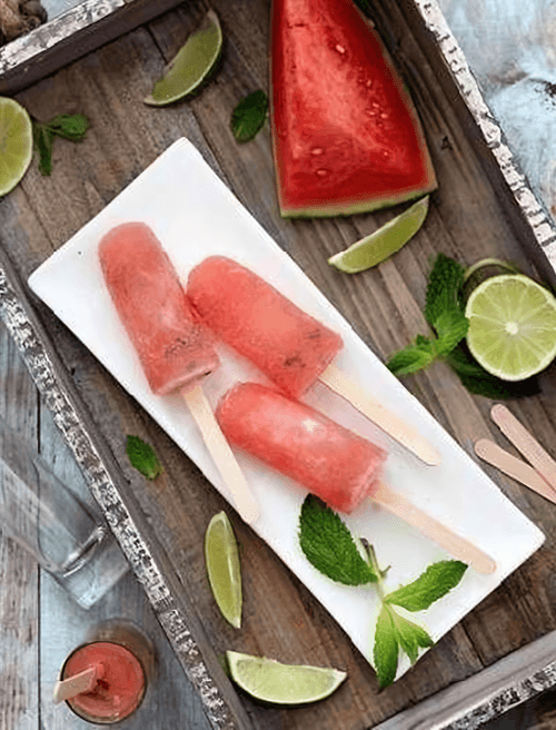 Before pouring the sorbet into the molds and freezing, place a cube of watermelon at the bottom of each.