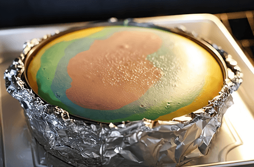 We take out the mold, remove the foil, and carefully take off the outer ring of the mold.