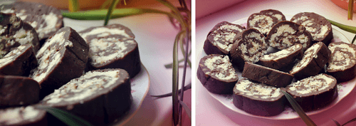 Spread the coconut mass on top, roll it up, and place it in the freezer for 30-40 minutes.