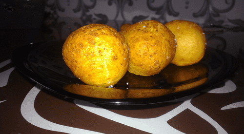 Fry in hot oil (so that the balls float in the air) until a golden crust forms.