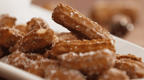 Serve churros with chocolate sauce.