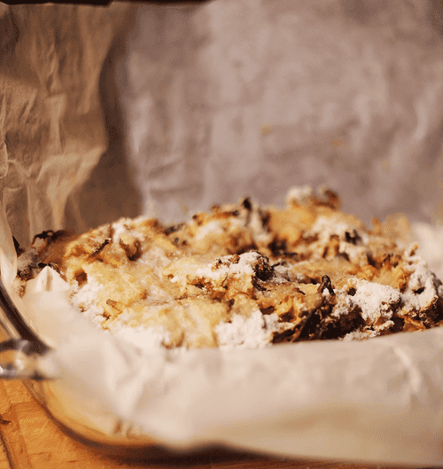 By the way, I recommend layering thin layers of oil on top of the last layer. I did this after the pie was baked. As a result, there won't be any powder on the pie - instead, the dry mixture will also bake.