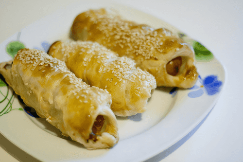 Sausages in puff pastry with sesame are a simple yet exquisite dish of Russian cuisine, perfect for a cozy family dinner or quick snacks. The airy puff pastry becomes crispy after baking and envelops juicy sausages, creating a harmonious blend of softness and tenderness. Sesame adds a nutty aroma and a light textural play to the dish, while the egg yolk provides an appetizing golden crust. Born from the traditions of simple and accessible cooking, this recipe has become a favorite in home kitchens as it requires no complex ingredients or time, yet always delights with its rich flavor and appetizing appearance. It pairs perfectly with aromatic sauce or fresh vegetables, adding a touch of freshness to the rich taste of the main dish.