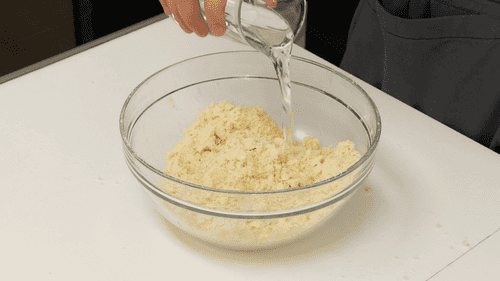 Cut the cold butter into small cubes. Sift the flour, mix in the butter cubes and sugar, and sprinkle with cold water. Knead the dough, wrap it in plastic wrap, and place it in the refrigerator for an hour.