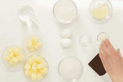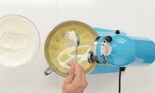 Add eggs, 1 ml of vanilla extract, and beat until smooth. Add flour to the resulting white mass and knead the dough.