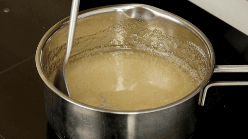 Bring water with agar-agar to a boil over low heat, stirring continuously with a spatula. Boil for a minute, add 300 grams of sugar, increase the heat to medium, bring the syrup to a boil again, and cook for a couple more minutes, stirring. You can check the consistency by lifting the spatula from the surface of the syrup; a thin thread should follow it. Let the syrup cool.