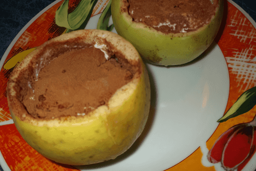 Take an apple, cut off the top, and carefully scoop out all the flesh from the apple (you should have molds with walls 5-10 mm thick).