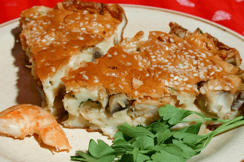 Shrimp and mushroom clafoutis is an exquisite dish of French cuisine that combines the tenderness of seafood with the rich flavor of mushrooms. Historically, clafoutis is a classic French dessert with cherries, but its variations can include savory ingredients. In this version, a light batter made from eggs and milk envelops juicy shrimp and aromatic champignons, giving the dish softness and a creamy texture. A subtle garlic accent and fresh parsley enhance the flavor, creating a harmonious combination. Clafoutis is served hot; its golden crust has a pleasant crunch while the filling remains tender. An ideal choice for an elegant dinner or festive table that highlights your love for gastronomic experiments.