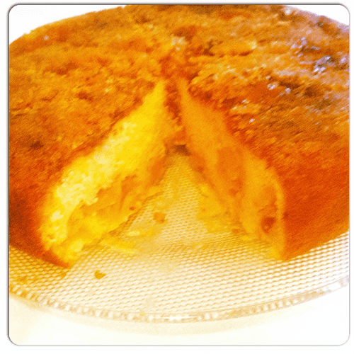 Place sliced apples (preferably firm and aromatic ones, like Antonovka) in the form and pour the batter over them.