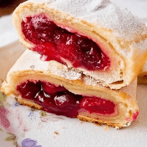 Austrian strudel with cherries is the embodiment of Austria's culinary traditions, an exquisite combination of crispy dough and juicy fruit filling. Its history dates back to the 17th century when strudels became popular in Central Europe. The cherry adds a refreshing tartness, while apples with cinnamon and brandy reveal a richness of flavor, creating a harmony of sweetness and spice. The light dough based on cottage cheese makes the texture soft, and the baked roll turns out fragrant and golden brown. This dessert is perfect for cozy family evenings or festive gatherings. Serving it slightly warm can highlight the tenderness of the filling, while a scoop of vanilla ice cream adds contrast and sophistication. Austrian strudel with cherries is not just a pastry but a true delight of taste and tradition.
