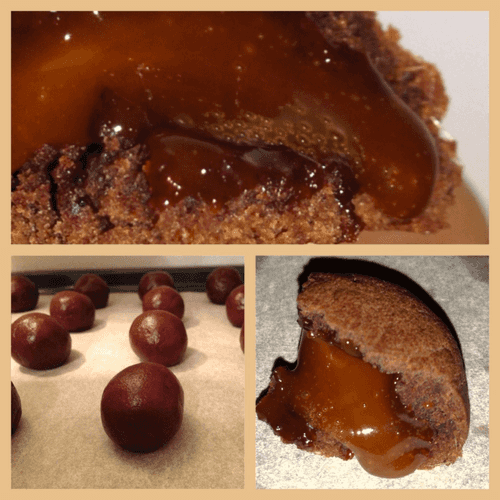 Mix the flour and butter mixtures until homogeneous. Do not knead the dough for too long! Place in the cold for at least 30 minutes. Roll the chilled dough into a sausage and cut it into equal-sized segments. Place 1 candy inside each piece and roll the cookie into a ball shape.