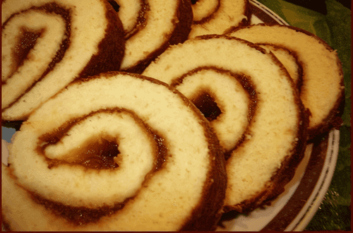 Pour the batter onto a baking sheet and bake for exactly 5 minutes. Remove from the oven, immediately spread with any jam, jelly, or preserve, and roll it up while hot. Let it cool completely and dust with powdered sugar.