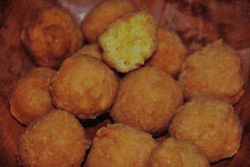 In a deep pan, heat vegetable oil over medium heat. Fry cheese balls in 4-5 batches until cooked and golden, 3-5 minutes per batch. Serve immediately.