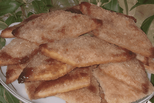 Crispy sour cream cookies are a simple yet surprisingly delicious dessert from Russian cuisine. Its roots lie in family traditions of home baking, where the simplicity of ingredients combined with the warmth of home. Sour cream gives the cookies a slight tang and tenderness, while sugar rolled into the dough creates a caramel crust and crunch. The dough is easy to prepare: margarine turns into an airy crumb with flour, then combines with sour cream, is chilled and rolled out. Baked diamonds become golden, crispy, and fragrant. Such cookies are perfect for morning tea or coffee and serve as a cozy treat for guests. They retain freshness well, allowing enjoyment of their taste even after several days.