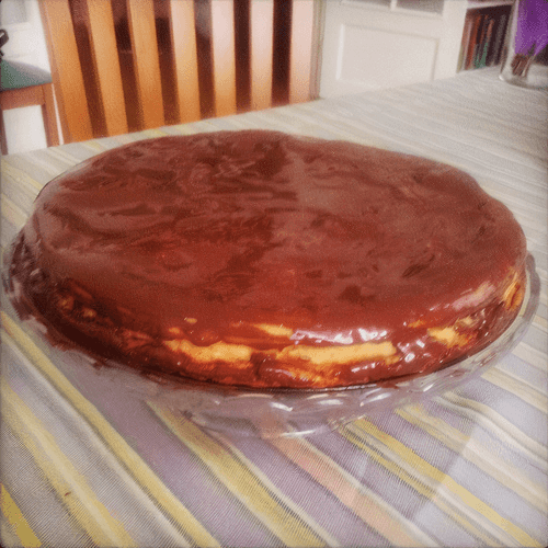 While it cools, prepare the glaze according to the instructions on the package. It can be replaced with melted chocolate.
