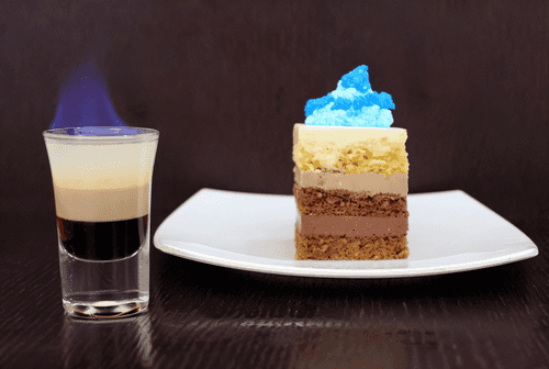 The 'B-52' pastry is an exquisite dessert inspired by the cocktail of the same name. Its layered structure reflects a richness of flavors: coffee, chocolate, and orange biscuits combined with Bavarian cream infused with notes of Kahlua, Baileys, and Cointreau. The delicate blend of alcohol and chocolate gives the pastry depth and richness, while airy Italian meringue finishes the composition with lightness. Each piece is a harmony of tenderness, sweetness, and refined bitterness from coffee and liqueurs. This dessert has become a favorite among connoisseurs of complex flavor compositions and is often served at festive events. Its aesthetics and complexity in preparation make the pastry a true culinary masterpiece that impresses not only with taste but also with appearance.