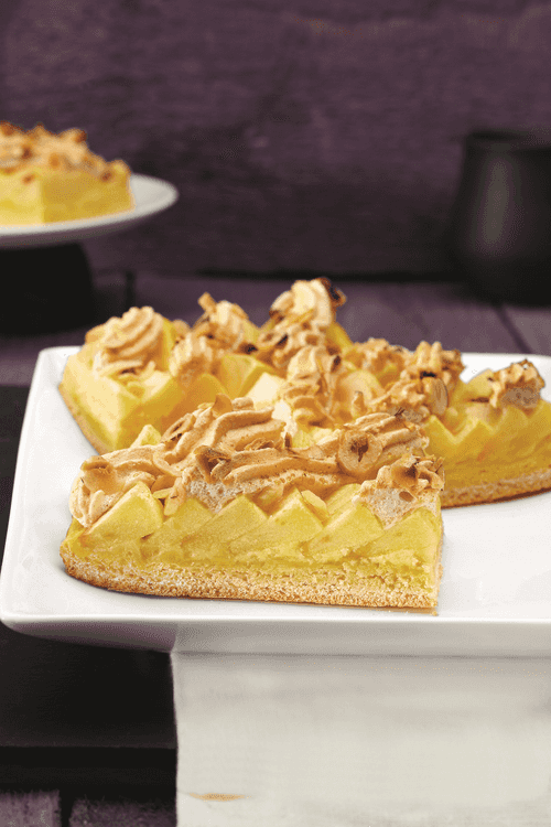 Apple pie with meringue and cinnamon is a true masterpiece of French cuisine, embodying the harmony of flavors and textures. The delicate yeast dough infused with vanilla aroma serves as the base for the juicy apple filling, which gains a velvety consistency thanks to the pudding cream. The egg white mixture whipped with sugar and cinnamon forms an airy meringue, while crunchy nuts add a refined texture to the pie. Its light sweetness, subtle spiciness of cinnamon, and nutty note make it an exquisite dessert perfect for cozy home evenings and festive gatherings. This dish feels like it’s transported from an old French patisserie, offering a taste of warmth and nostalgia that turns every tea time into true delight.