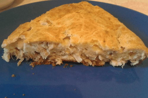 Quick chicken pie is a simple and hearty option for homemade baking, originating from Russian cuisine. Its roots lie in traditional filled pies known for their ease of preparation and tender texture. Here, the dough made with sour cream and mayonnaise is airy, while the filling of juicy chicken is nutritious. The pie has a soft, slightly creamy taste complemented by a light crispness of the crust. It can be served as a standalone dish or as an appetizer with broths and salads. Ideal for a quick dinner or unexpected guests.