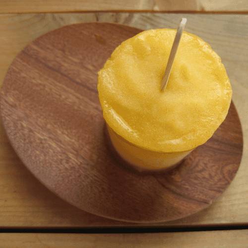 Peel ripe mangoes, cut the flesh from the pit, and blend it into a smooth puree. Strain the puree through a sieve to remove any tough fibers. The result should be about 500 grams of strained puree.